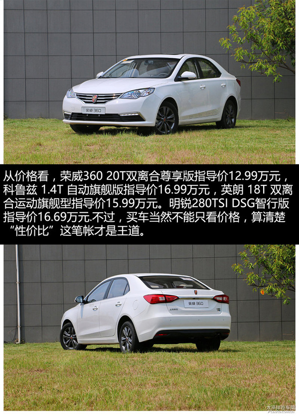 由于國內(nèi)SUV市場(chǎng)車型的放量增長(zhǎng),轎車的市場(chǎng)份額受到一定程度的沖擊,銷量增速已經(jīng)明顯放緩,不過就A級(jí)車市場(chǎng)來看情況還算是比較樂觀的。曾經(jīng)的80、90后已經(jīng)成長(zhǎng)起來,并有一大部分成為了當(dāng)下社會(huì)的中堅(jiān)力量,他們也有了消費(fèi)汽車的能力,而對(duì)于這一代的人來說,他們更重視的是實(shí)際的用戶體驗(yàn)及所謂的“價(jià)值感”,不光這點(diǎn),還要符合預(yù)算,空間、操控、配置和用車成本等都要列入重點(diǎn)“考察項(xiàng)目”。今天筆者特地精心挑選了4款熱門車型:榮威360、科魯茲、英朗,明銳,分別從它們的價(jià)格、動(dòng)力、性能、油耗、空間等方面一一分析,看誰才是性價(jià)比之王。