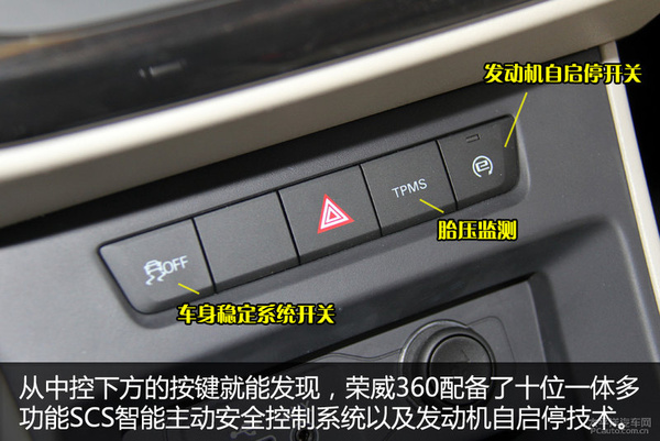 榮威360在安全配置方面卻做得十分到位,如十位一體多功能SCS智能主動(dòng)安全控制系統(tǒng)(涵蓋VSC車身穩(wěn)定控制、iTPMS間接式胎壓監(jiān)控、HSA坡道起步輔助以及HRC坡道溜車控制系統(tǒng)等),加上高強(qiáng)度車身以及全車6個(gè)安全氣囊,可全方位保障行車安全。