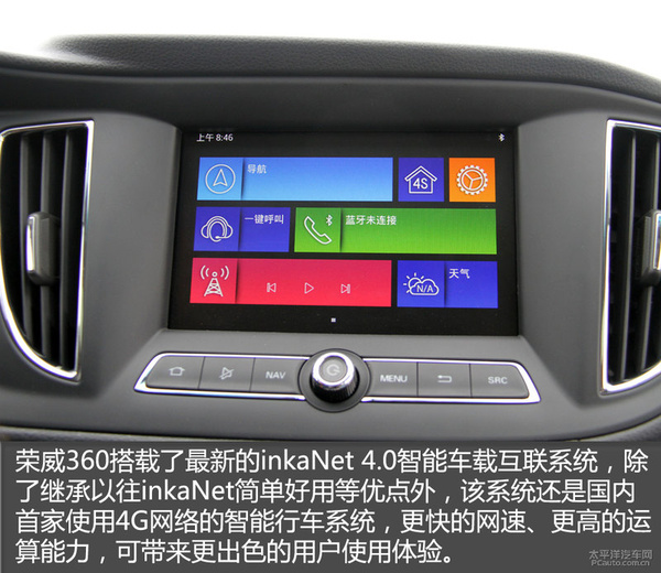 另外,榮威360還搭載了最新的inkaNet 4.0智能車載互聯(lián)系統(tǒng)。inkaNet4.0網(wǎng)絡(luò)智能行車系統(tǒng)采用iMX6雙核處理器,處理速度較前代提升50%以上,特別讓人驚喜的是,inkaNet4.0還支持蘋果CarPlay,果粉們將無需再擔(dān)心手機(jī)系統(tǒng)與車載系統(tǒng)不匹配的問題。只需將手機(jī)與車機(jī)互聯(lián),這塊8寸大屏就能變成蘋果手機(jī)的“第二塊屏”,用戶即可便捷享受手機(jī)系統(tǒng)的強(qiáng)大功能。該系統(tǒng)還具備MirrorLink互聯(lián)、多媒體影音娛樂等多項(xiàng)功能,完全能滿足“新小家庭”對(duì)車內(nèi)娛樂的需求。