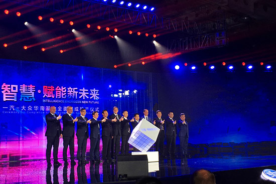 央廣網(wǎng)廣州6月23日消息(記者葛成)22日晚,一汽-大眾華南基地全面建成投產(chǎn)儀式在廣州省佛山市隆重舉行。廣東省佛山市委副書(shū)記、市長(zhǎng)朱偉,德國(guó)大眾汽車集團(tuán)管理董事會(huì)成員、大眾汽車集團(tuán)(中國(guó))總裁兼CEO海茲曼教授,中國(guó)第一汽車集團(tuán)公司黨委副書(shū)記、副總經(jīng)理秦?zé),一?大眾經(jīng)管會(huì)成員以及眾多媒體嘉賓、合作伙伴、員工代表共同參與了儀式。