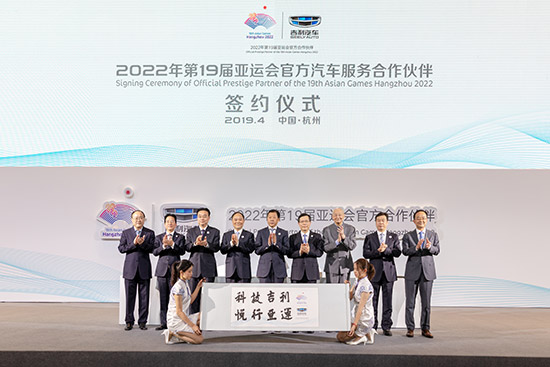 亞奧理事會(huì)主席艾哈邁德親王在賀詞中指出:“歡迎吉利作為杭州亞運(yùn)會(huì)首家官方合作伙伴,加入亞運(yùn)大家庭,感謝吉利為第19屆亞運(yùn)會(huì)舉辦所做出的創(chuàng)新和努力。吉利發(fā)展迅速,已經(jīng)成為全球汽車產(chǎn)業(yè)舉足輕重的品牌,是新能源技術(shù)、智能網(wǎng)聯(lián)技術(shù)、自動(dòng)駕駛技術(shù)等核心技術(shù)領(lǐng)域的全球領(lǐng)軍者。我相信,吉利汽車將以科技賦能亞運(yùn),為參加第19屆亞運(yùn)會(huì)的全體運(yùn)動(dòng)員、教練員、官員、觀眾等所有人帶來非凡的出行體驗(yàn),向全世界展現(xiàn)中國科技的活力!