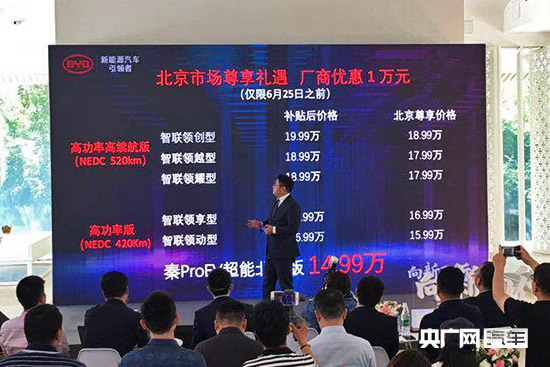 央廣網北京5月16日消息(記者葛成)今天,比亞迪秦Pro EV超能版在北京正式上市,新車根據(jù)電池容量和配置的不同共推出了六款車型,售價為24.89-29.89萬元(補貼后售價為14.99-19.99萬元)。除了全國版的車型外,官方還專為北京市場推出了一款秦Pro EV超能北京版,補貼后的售價為14.99萬元。