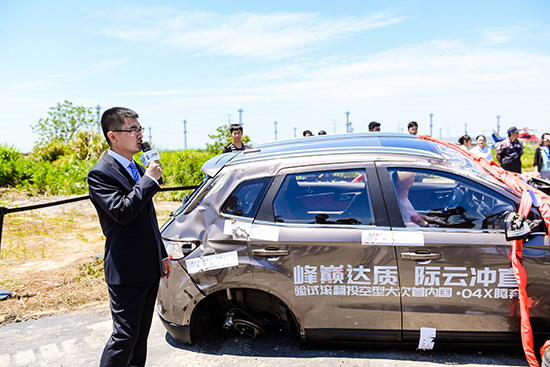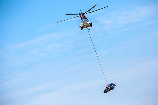 上午十時(shí)許,奔騰X40被直升飛機(jī)吊起,空投翻滾試驗(yàn)開始。隨后車輛被直升飛機(jī)以120KM/H的速度從空中直接拋向地面,在地面上不斷翻滾,發(fā)生巨大聲響和激烈碰撞。在經(jīng)歷了嚴(yán)重的撞擊、翻滾后,奔騰X40經(jīng)受住了考驗(yàn),車身無(wú)明顯變形,車內(nèi)試驗(yàn)假人沒(méi)有受到“傷害”。