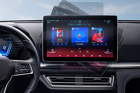 比亞迪官方將新車駕駛艙稱為黃金分艙設(shè)計。其中,中控臺向主駕偏斜7°,BYD Heart智匯之心中控臺采用全新設(shè)計,DiLink 2.0智能網(wǎng)聯(lián)系統(tǒng)支持400萬+APP,還囊括12.8英寸8核自適應(yīng)旋轉(zhuǎn)懸浮Pad、智能語音交互、智能云服務(wù)、OTA智能遠程升級等亮點科技,現(xiàn)場還展示了全新的360度全息透明影像系統(tǒng),駕駛員可在車內(nèi)查看車輛下方情況。