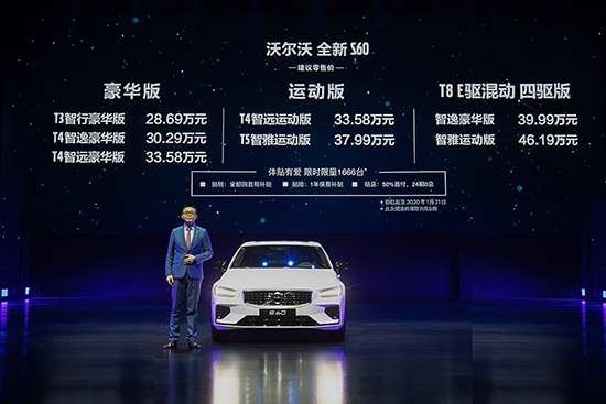 央廣網(wǎng)上海12月13日消息(記者葛成)12月12日晚,沃爾沃全新S60在上海正式上市,新車提供了T3/T4/T5(2.0T渦輪增壓)以及T8(2.0T混合動力)四種動力的車型。定價28.69-46.19萬元。據(jù)了解,本次上市的全新S60在軸距方面和海外版的一致,要長于上一代長軸版S60L車型,達到了2872mm。