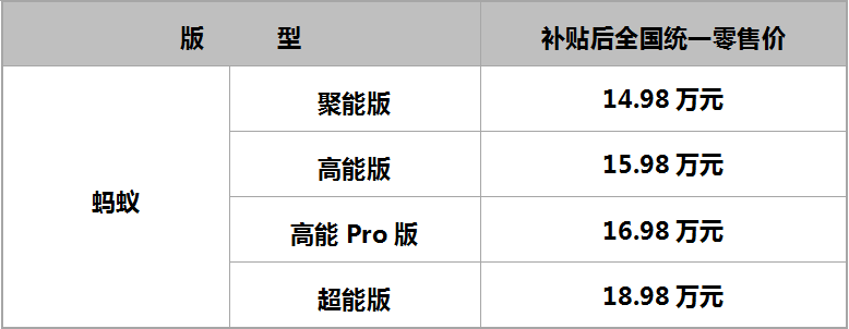 作為平臺首款純電SUV,螞蟻擁有超輕量化車身架構(gòu)、輕量化底盤設計,獨創(chuàng)隼骨多腔封閉車身骨架+環(huán)狀籠式車身結(jié)構(gòu),搭載了L2+級自動駕駛輔助、高效智慧三電等系統(tǒng),實現(xiàn)在續(xù)航里程、智能駕駛、安全防護等方面的越級優(yōu)勢。