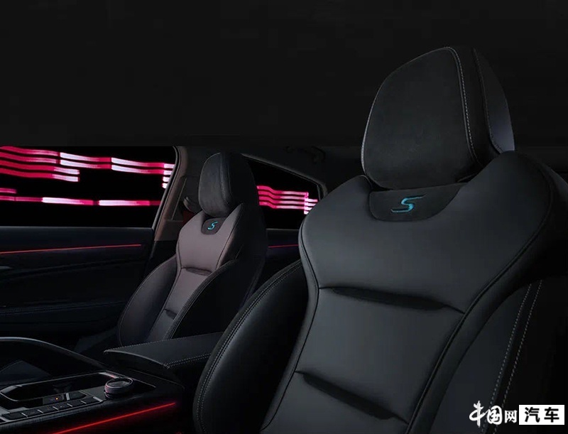 內(nèi)飾方面,新車沿用了普通版車型的設計,采用了皮質(zhì)黑色座椅同時,在座椅頭枕處有藍色專屬“S”字樣標識,除此之外,還換裝了紅色安全帶。