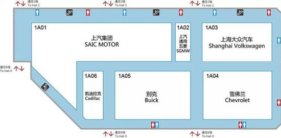 由圖可見,主場作戰(zhàn)的上汽集團將1號館整體打包,立志打造世界著名汽車公司的上汽集團果然很有氣勢。該館的重點新車主要包括凱迪拉克的全新旗艦級別車型CT6(與奧迪A8、奔馳S級競爭的豪華車型),以及上海大眾兩廂桑塔納等幾款走量的車型。