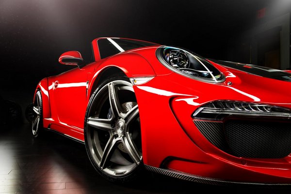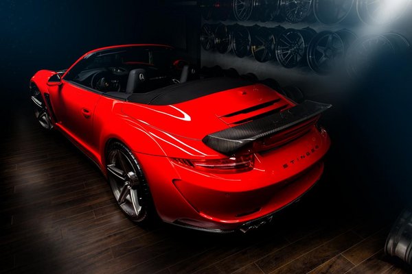 可以看到,外形驚艷的保時捷991紅色敞篷超跑假裝了全新的輪轂,看上去非常迷人。另外安裝了許多的空氣動力學(xué)套件,其中包括全新的前后保險杠,同時升級的還有前翼和尾翼,同時在排氣管上也進(jìn)行了相應(yīng)的升級,看來其更加強(qiáng)勁。而這些所有的改裝套件全部采用碳纖維材質(zhì),以保證車身的輕量化。