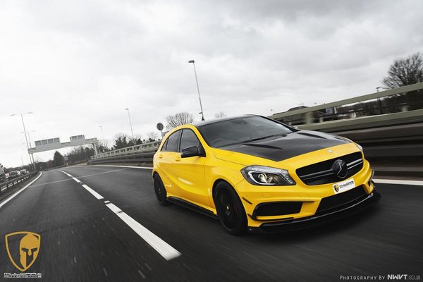 奔馳A級AMG可以說是最小也是最便宜的AMG車型,憑借時尚的外觀和不錯的操控性能,A級AMG得到了不少年輕人的青睞。近日,海外媒體曝光了一組梅賽德斯-奔馳A45 AMG改裝車的官方圖片,而這款回頭率爆表的酷炫小車則是由RevoZport和Mulgari兩家改裝公司聯(lián)手打造的。