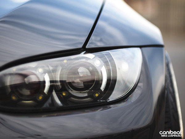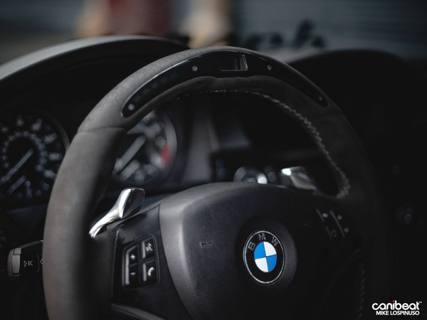編輯點(diǎn)評:亮黑色的戎裝讓335xi有那么一點(diǎn)神秘感,通過避震等調(diào)節(jié),車身更加低矮,更加貼近運(yùn)動兩個字,帥氣的輪轂閃閃發(fā)光,粗壯的方向盤,配合換擋撥片,讓車子更富有運(yùn)動氣息。寬體套件的加裝,也讓它變得更加飽滿。