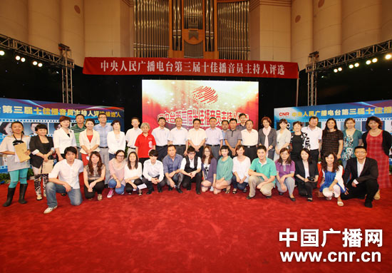 中央人民廣播電臺(tái)第三屆十佳播音員主持人評(píng)選初賽領(lǐng)導(dǎo)和評(píng)委合影(李新建攝)