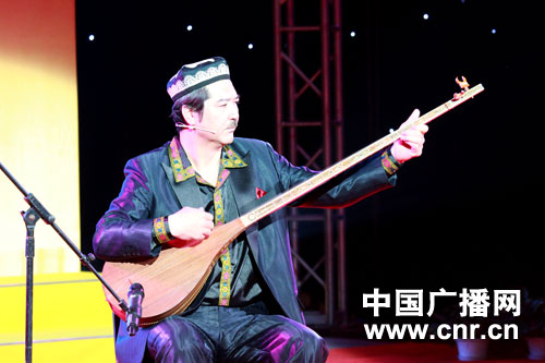 中廣網(wǎng)北京10月28日快訊(記者蔡波 李東巖 何微)中央人民廣播電臺第三屆十佳播音員主持人評選決賽于今日(28日)下午13時30分在中央臺音樂廳舉行。20位候選人通過自己的才藝展示爭奪十佳榮譽。維語頻率主持人阿不都卡得爾·阿西木才藝展示自彈自唱歌曲。