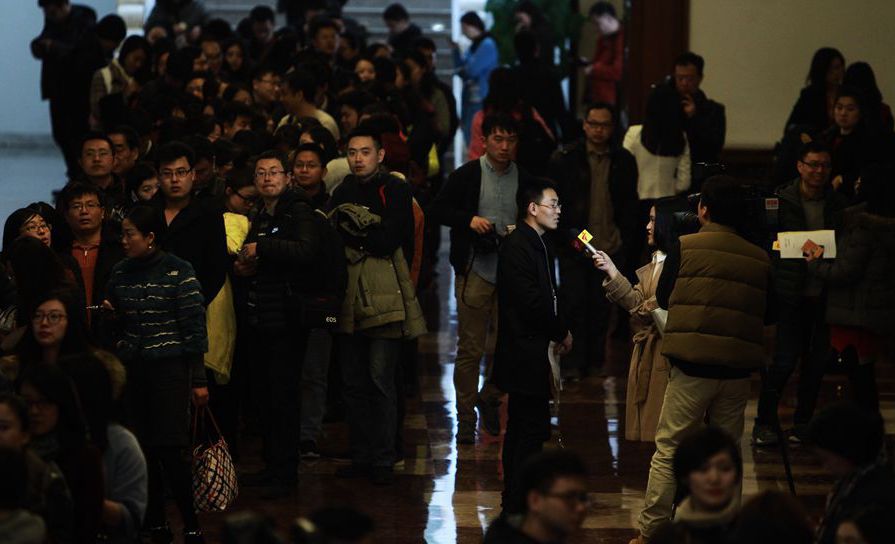 記者排隊(duì)領(lǐng)證 全國(guó)兩會(huì)“新聞戰(zhàn)”拉開序幕