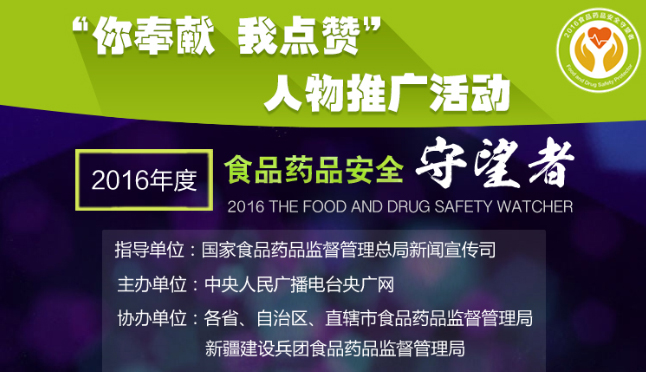 2016“食品藥品安全守望者”人物推廣活動(dòng)結(jié)果揭曉