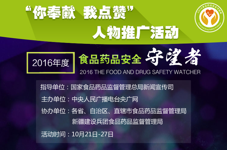 “你奉獻(xiàn) 我點(diǎn)贊”,2016年“食品藥品安全守望者”人物推廣活動(dòng)以普通人物為視角,普及食品藥品安全崗位職能,展現(xiàn)“食藥安全守望者”風(fēng)采,展示以人為本的食品藥品安全理念,以大眾喜聞樂見的方式,引領(lǐng)社會(huì)向守望大眾食品、藥品安全的基層員工傳遞肯定關(guān)懷、繼續(xù)前行的力量。