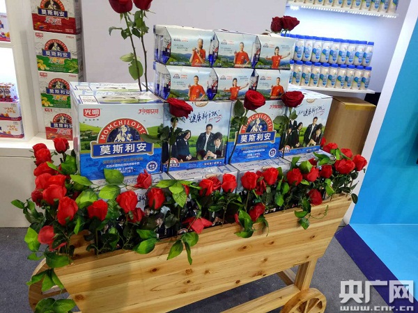 光明乳業(yè)展區(qū)乳品展示(圖片:央廣網(wǎng)記者 王啟慧)