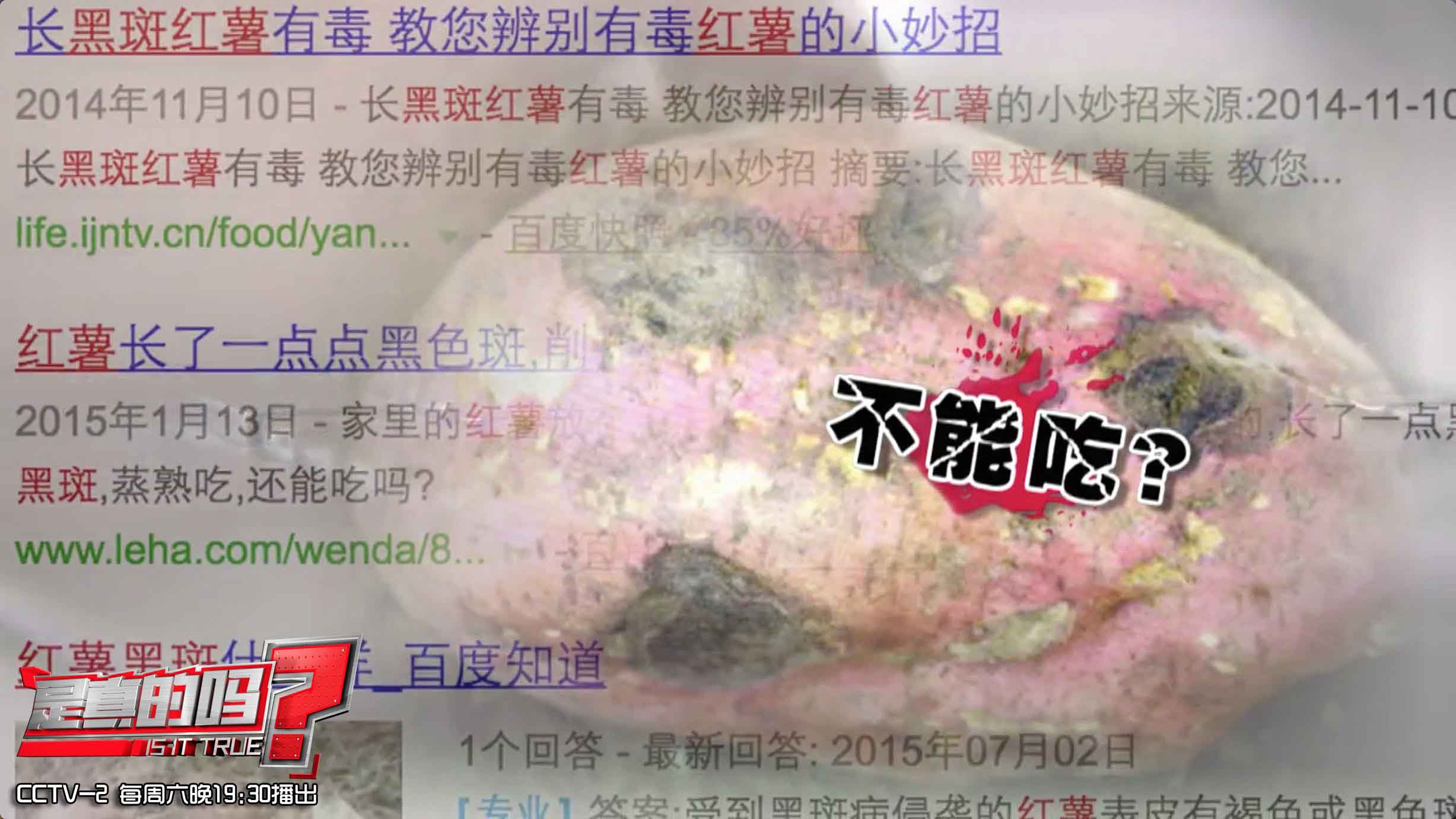 專(zhuān)家采訪和檢測(cè)數(shù)據(jù)表明,在病變部位一厘米外的薯肉就已經(jīng)檢測(cè)不到甘薯酮和甘薯酮醇等有毒物質(zhì)了。同時(shí)專(zhuān)家還告訴我們,并不是所有長(zhǎng)了黑色斑塊的紅薯都會(huì)產(chǎn)生毒素。