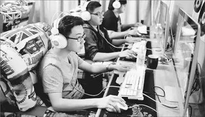 網(wǎng)吧是青少年熬夜的主要場所之一。圖為年輕人在山東青島一家網(wǎng)吧上網(wǎng)玩游戲。
