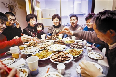 今年26歲的青島人王玨如今是個北京女婿,今年是結婚頭一年,要帶著新媳婦回青島過年。自打他離開青島來北京工作,已經兩年沒回家過年了,問他是否想念家里做年夜飯的味道,他說,其實爸媽的手藝和味道肯定是一直記得的,但是年夜飯,卻是很久沒有在家里吃了!拔野质情L子,爺爺奶奶也是跟著我們住,所以每年年夜飯都是叔叔姑姑們來家里吃,小時候家里地兒不夠寬敞,我們這些小孩兒都上不了大桌子吃飯。印象中是很多人,但卻很溫馨,很熱鬧。后來大概是我上初三還是高一那年,爸爸就帶著我們全家去飯店吃年夜飯了,好像是最小那個叔叔也結婚了,人多,家里坐不下了吧。飯店里雖然省事,不過我其實還是想念小時候在家里吃年夜飯的感覺。”