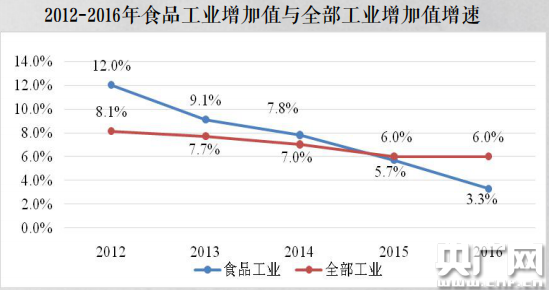 據(jù)現(xiàn)場(chǎng)發(fā)布的《2012-2017中國(guó)食品工業(yè)發(fā)展報(bào)告》顯示,我國(guó)食品工業(yè)總量規(guī)模不斷擴(kuò)大。2016年,食品工業(yè)增加值占全國(guó)工業(yè)11.9%,同比增長(zhǎng)3.3%。規(guī)模以上食品工業(yè)企業(yè)數(shù)量42144家,資產(chǎn)總額76393.03億元,平均用工人數(shù)812.6萬(wàn)人,分別占全國(guó)工業(yè)的7.0%、11.1%和8.6%。2017年上半年,食品工業(yè)增加值同比增長(zhǎng)6.7%,若不計(jì)煙草制品業(yè),同比增長(zhǎng)則達(dá)到8.3%,比全部工業(yè)高1.4個(gè)百分點(diǎn)。