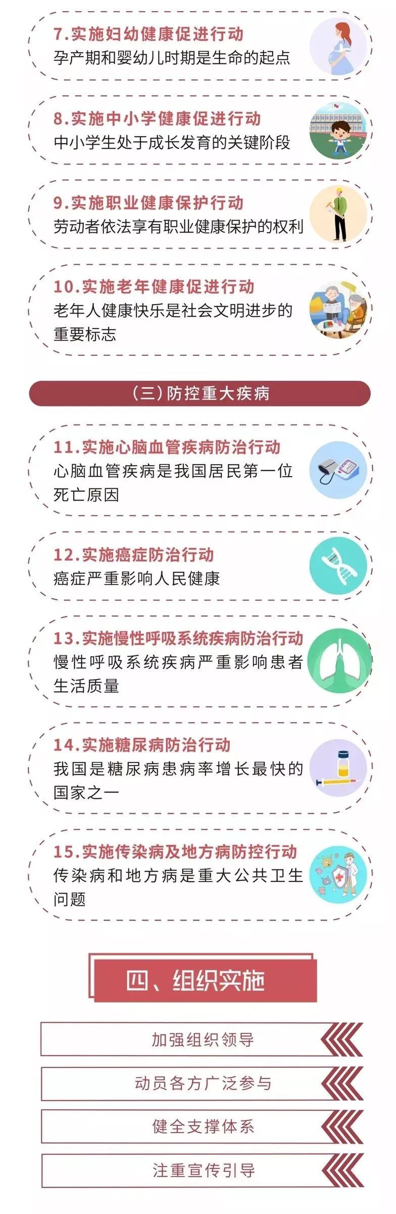 《方案》提出,建立健全組織架構(gòu),依托全國(guó)愛(ài)國(guó)衛(wèi)生運(yùn)動(dòng)委員會(huì),成立健康中國(guó)行動(dòng)推進(jìn)委員會(huì),制定印發(fā)《健康中國(guó)行動(dòng)(2019-2030年)》,統(tǒng)籌推進(jìn)組織實(shí)施、監(jiān)測(cè)和考核相關(guān)工作。推進(jìn)委員會(huì)主任由國(guó)務(wù)院分管領(lǐng)導(dǎo)同志擔(dān)任,推進(jìn)委員會(huì)辦公室設(shè)在國(guó)家衛(wèi)生健康委。推進(jìn)委員會(huì)下設(shè)各專項(xiàng)行動(dòng)工作組,設(shè)立專家咨詢委員會(huì)。