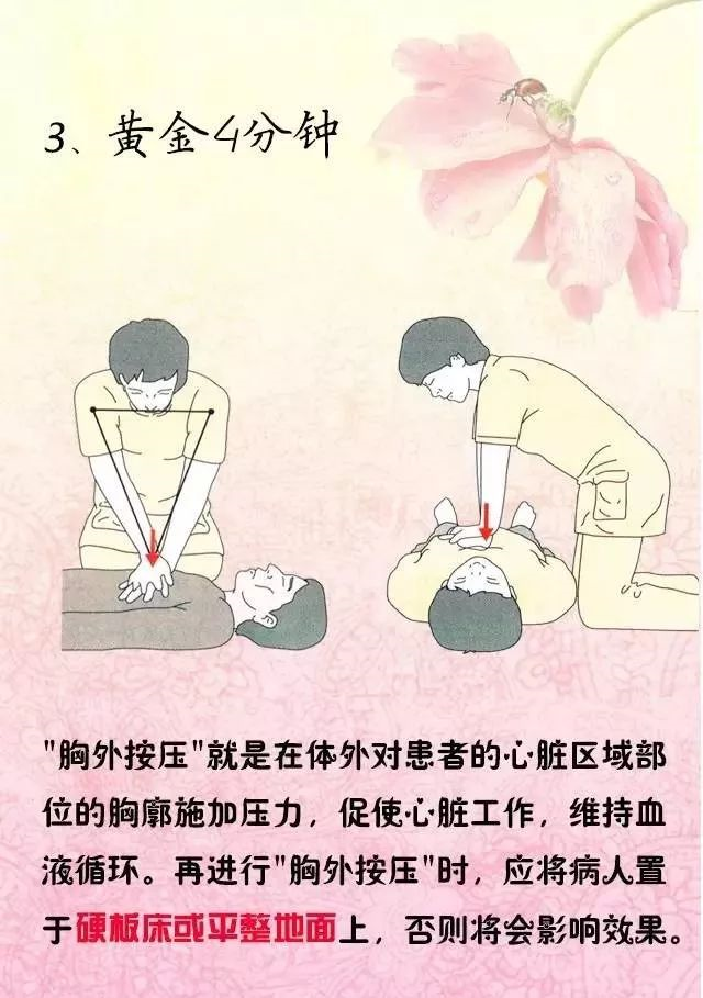 3、全身方面:常有38度的發(fā)熱情況,心跳也會(huì)加速。這種情況大約會(huì)持續(xù)約7天。渾身乏力,精神不振,想睡覺(jué),出現(xiàn)感冒才出現(xiàn)的病癥,諸如頭暈,腹瀉,惡心,嘔吐等。大部分病人會(huì)在發(fā)病的一兩周內(nèi)發(fā)生心律失常的狀況。黃金4分鐘當(dāng)身邊的心臟病患者發(fā)生心臟驟停的時(shí)候,我們需抓緊4分鐘內(nèi)的緊急搶救時(shí)間,這樣也能使患者得救的可能性大大增加,也稱(chēng)為4分鐘黃金時(shí)間。要知道心肺復(fù)蘇每延遲一分鐘,心室顫動(dòng)、突發(fā)心臟驟;颊叩纳媛示蜁(huì)下降7%~10%;如若抓住早期心肺復(fù)蘇時(shí)機(jī),則可使心室顫動(dòng)、突發(fā)心臟驟;颊呱媛试黾拥2~3倍。