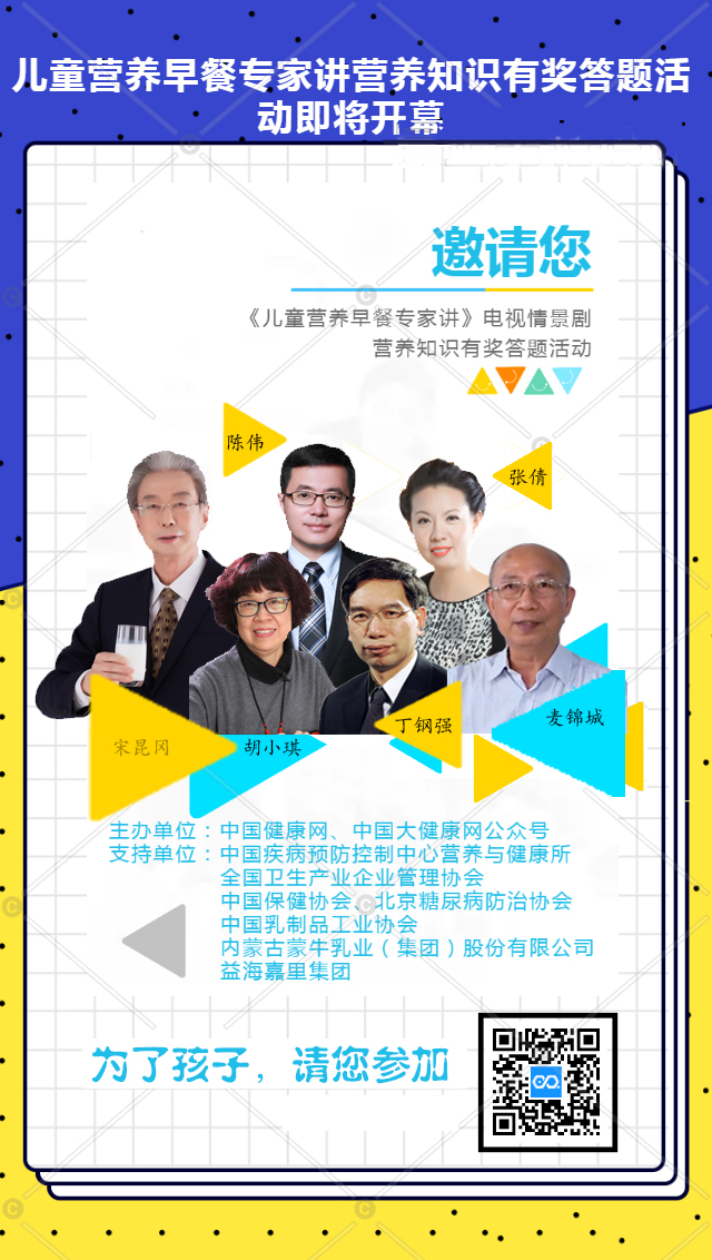 央廣網(wǎng)北京6月29日消息 由中國健康網(wǎng)、中國大健康網(wǎng)公眾號舉辦的“營養(yǎng)早餐專家談”系列活動將于7月1日正式開啟,讓權(quán)威專家告訴您:孩子早餐應(yīng)該吃什么,怎么吃。營養(yǎng)早餐對兒童青少年的身心發(fā)育有何影響?營養(yǎng)早餐對兒童青少年的學(xué)習(xí)成績有何影響?營養(yǎng)早餐對兒童青少年的性格培養(yǎng)有何影響?營養(yǎng)早餐對糖尿病的防治等。