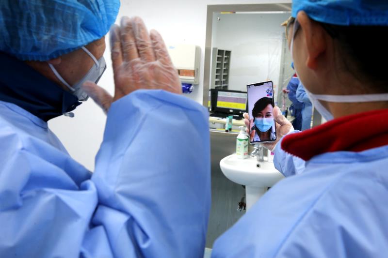 3月14日,韓傳恩與李婷一起同董娟進(jìn)行視頻連線合影。韓傳恩是商丘市第一人民醫(yī)院院長(zhǎng),也是河南第十一批援鄂醫(yī)療隊(duì)總隊(duì)長(zhǎng),負(fù)責(zé)支援武漢大學(xué)人民醫(yī)院危重癥病人的醫(yī)療救治工作。2009年,手足口病肆虐豫東,武漢大學(xué)人民醫(yī)院組織醫(yī)護(hù)隊(duì)員加入到國(guó)家專家團(tuán)隊(duì),趕赴商丘,克服重重困難,實(shí)現(xiàn)了患兒零死亡,扭轉(zhuǎn)了商丘在手足口病重癥救治上的被動(dòng)局面。韓傳恩在得知2009年曾經(jīng)到商丘市第一人民醫(yī)院支援手足口病救治工作的護(hù)士李婷、董娟正在抗擊新冠肺炎一線后,大家都很激動(dòng),感慨兩個(gè)團(tuán)隊(duì)時(shí)隔11年又能夠攜手并肩,為抗擊新型冠狀病毒肺炎一起戰(zhàn)斗。然而,董娟不慎感染新型冠狀病毒,目前正在治療康復(fù)中。韓傳恩與她視頻連線,鼓勵(lì)她保持樂觀心態(tài)戰(zhàn)勝病魔!拔覀兪菓阎卸鞯男膩淼轿錆h的,醫(yī)院第一時(shí)間組建了62人的危重癥救治專家團(tuán)隊(duì)!表n傳恩說,“2009年,河南遭受手足口病肆虐時(shí),武漢的醫(yī)務(wù)工作者第一時(shí)間奔赴河南,支援商丘的手足口病救治工作。如今武漢人民遇到困難,我們盡自己綿薄力量,與武漢人民一道共同戰(zhàn)勝疫情!保ê幽先?qǐng)?bào)記者 王錚攝)
