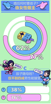 在傳統(tǒng)價值觀里,孩子被視為延續(xù)婚姻、家庭最重要的連結(jié)。現(xiàn)如今,生孩子并不再是一道必選項,這個決定權(quán)也直接由女性所掌握!秷蟾妗凤@示:關(guān)于何時要孩子,62%的男性和77%的女性一致認為“由女性做主”。
