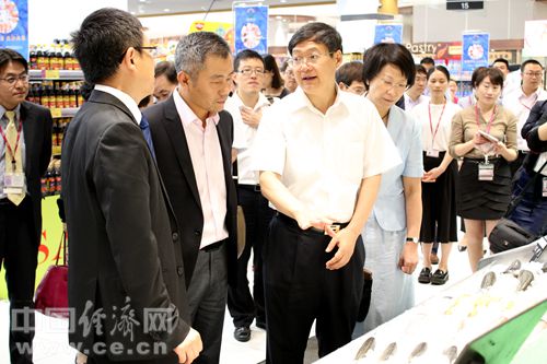 國(guó)家食品藥品監(jiān)督管理總局黨組成員、食品安全總監(jiān)郭文奇參觀超市貨架。中國(guó)經(jīng)濟(jì)網(wǎng)記者 韓肖/攝