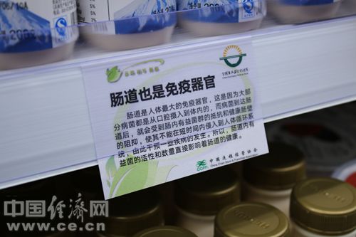 永旺超市低溫奶制品貨架區(qū)內(nèi),擺放的食品安全科普介紹。中國(guó)經(jīng)濟(jì)網(wǎng)記者 韓肖/攝