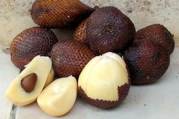 蛇皮果產(chǎn)于印尼等熱帶地區(qū),棕褐色的外皮上覆蓋一層密密麻麻的鱗片,像是蛇皮,因此形象地稱為“蛇皮果”。蛇皮果的果膠和鉀含量居水果之首,對身體十分有益。