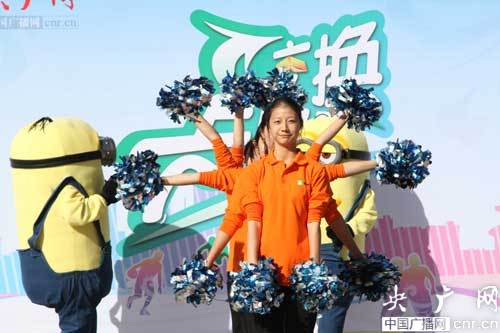 舞臺上青春洋溢的拉拉隊,正在為即將出發(fā)的同學(xué)們加油鼓勁!
