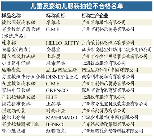 廣州童裝抽檢近三成不合格 阿迪達斯上榜