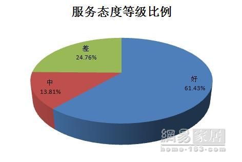 調(diào)查結(jié)果顯示家具行業(yè)售后服務(wù)整體水平有所提高的同時(shí),調(diào)查人員也發(fā)現(xiàn)家具行業(yè)的售后服務(wù)電話依然存在很多問(wèn)題,比如一些企業(yè)的客服電話為經(jīng)銷(xiāo)商服務(wù),在面對(duì)消費(fèi)者關(guān)于產(chǎn)品質(zhì)量資訊的時(shí)候態(tài)度顯得不耐煩,急于把服務(wù)的責(zé)任推給經(jīng)銷(xiāo)商,急于結(jié)束通話的情緒明顯流露。應(yīng)對(duì)消費(fèi)者的投訴顯得非常不專(zhuān)業(yè),服務(wù)態(tài)度差評(píng)率為24.76%。