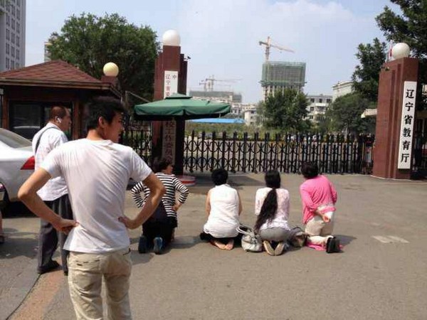 7月31日,遼寧省沈陽(yáng)市,由于近一周來(lái)在遼寧省各部門(mén)奔走上訪無(wú)果,報(bào)考沈陽(yáng)音樂(lè)學(xué)院的四十余名學(xué)生家長(zhǎng)代表今天選擇在遼寧省教育廳門(mén)前集體下跪,以祈求遼寧省教育廳出面給予說(shuō)法。