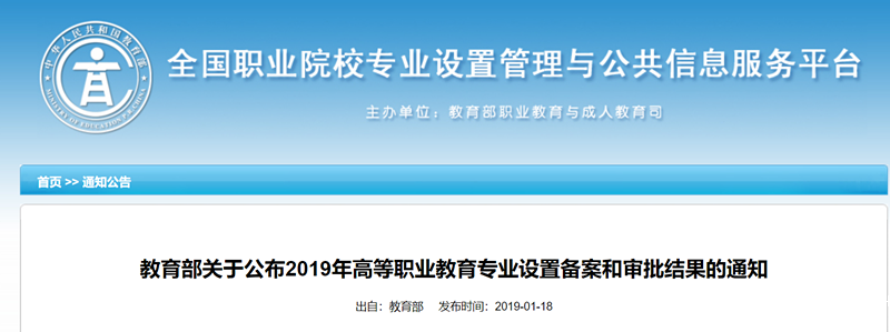 近日,教育部就各省申請2019年新設(shè)的國家控制高職專業(yè)進(jìn)行審批,經(jīng)各方審批后同意新設(shè)的國家控制高職專業(yè)共計744個,專業(yè)點58085個。