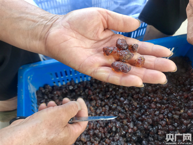 在合作社的小院里,兩個大娘正對著兩框琥珀色的結晶迅速挑揀。”這是我們桃樹上的結的桃膠,王康云會幫我們拿出去賣掉!坝捎谕寥缐A性較大,獅子崗的桃樹產出的桃膠也多,王康云總是一家家打電話問桃農有沒有桃膠要拿來賣。“不收錢的,他們平時在這里幫忙做活,雖然我自己不賣桃膠,但只要留心到了銷路,我就幫著他們賣。”