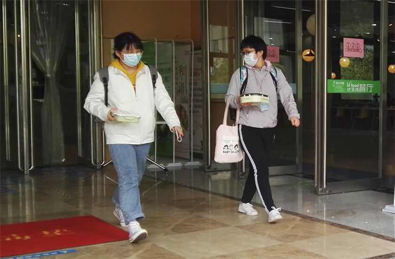 同時,學(xué)校餐廳取消了之前的選餐模式,改為套餐供應(yīng),學(xué)生在就餐時,嚴(yán)格按照秩序排隊進門前先消毒,之后分批排隊取餐,再分區(qū)域就餐。