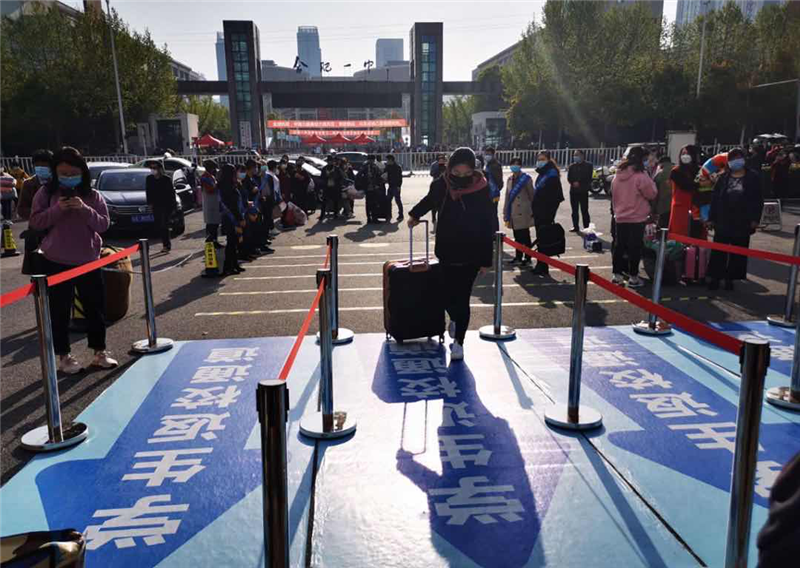 返校學(xué)生通過學(xué)生返校通道進入校園(圖片來源:合肥晚報)