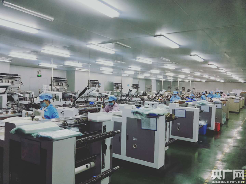 安徽江南產(chǎn)業(yè)集中區(qū)康采恩醫(yī)療公司加班生產(chǎn)醫(yī)用口罩包裝 央廣網(wǎng)發(fā) 方操勝攝