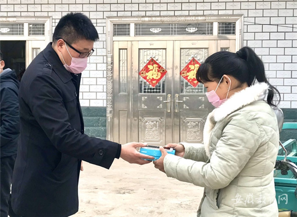 2月28日,在安慶市迎江區(qū)長(zhǎng)風(fēng)鄉(xiāng)柘山村卡口,面對(duì)長(zhǎng)風(fēng)中心學(xué)校校長(zhǎng)陳四一行送來的打印好的新學(xué)期教材,五年級(jí)留守兒童蘇婷的爺爺很激動(dòng)。
