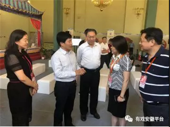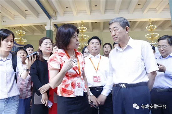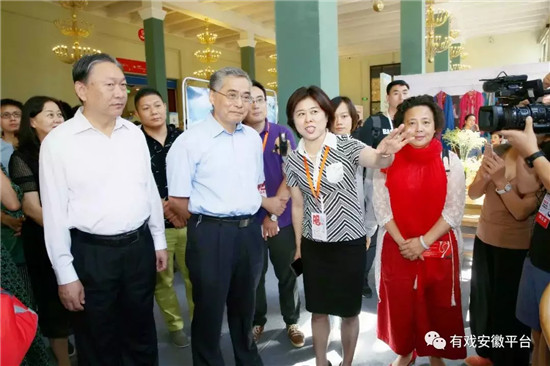 9月7日-9日,文化和旅游部副部長、黨組成員項(xiàng)兆倫,文化和旅游部市場(chǎng)司司長吳江波,北京市委常委、宣傳部部長杜飛進(jìn)分別來到“有戲安徽”展館,詳細(xì)了解了“有戲安徽”平臺(tái)的運(yùn)作模式、活動(dòng)開展,對(duì)有戲安徽成立一年來取得的成果和首屆全國戲迷春晚活動(dòng)給予肯定和贊許。安徽演藝集團(tuán)黨委副書記、總經(jīng)理李梅梅陪同參觀。
