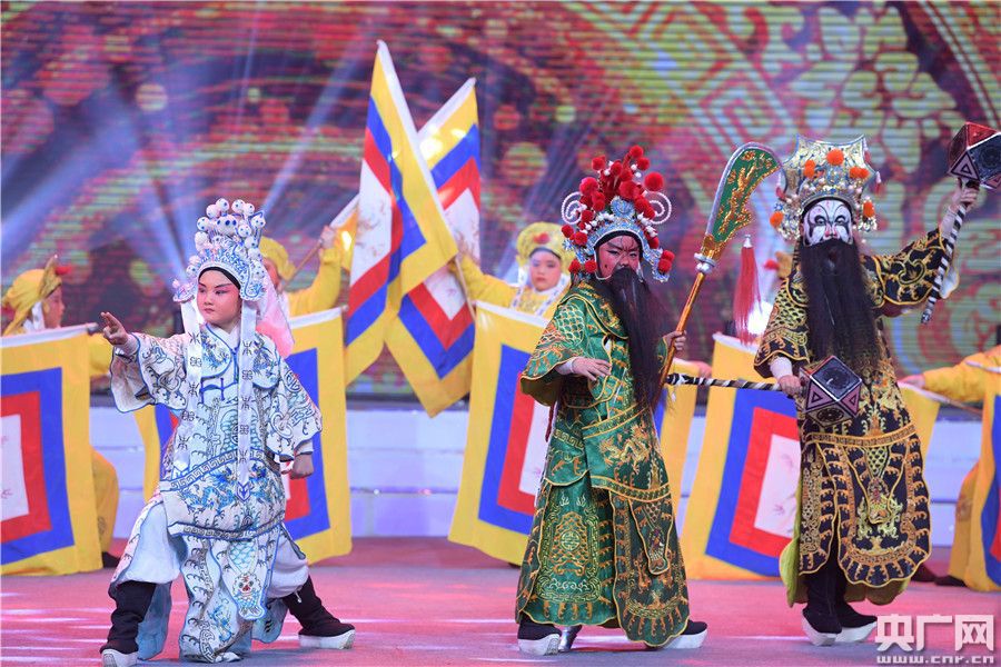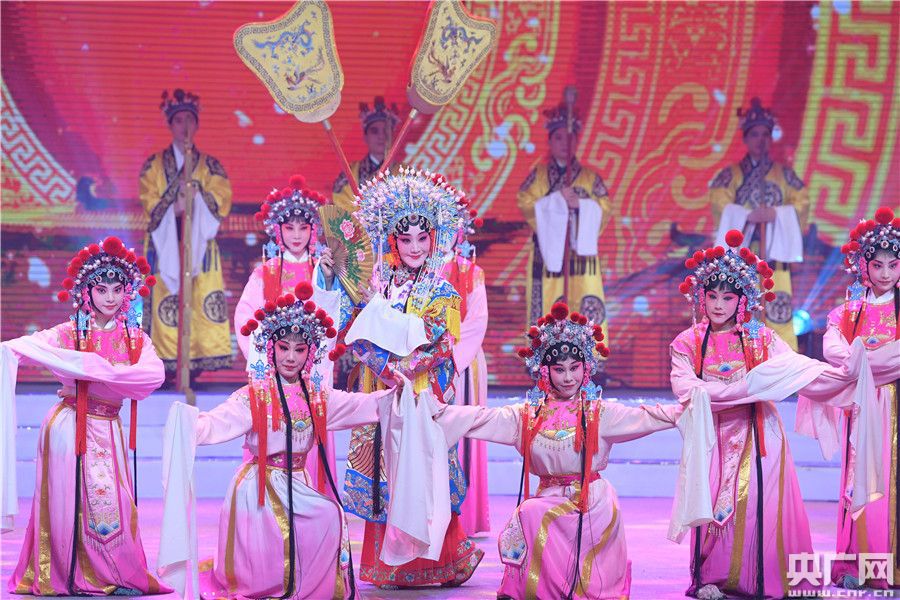 當晚19:30分,晚會正式拉開帷幕。本場晚會共分“歡天喜地過大年”、“東西南北喜相逢”和“百戲盛典唱九州”三個篇章,秉承“名角示范與票友展示相結合、草根藝人與普通百姓共參與”的主旨,由戲迷和名家同臺演繹,蔣建國、吳亞玲、李文、王丹紅、汪育殊等五位戲劇梅花獎獲得者和陶軍、余順等戲曲名家、丁于、王紅濤、燕妮、黃曉越等皖籍歌手鼎力加盟,為觀眾獻上耳熟能詳?shù)慕?jīng)典唱段、戲歌,讓觀眾享受一場精彩的視聽盛宴。