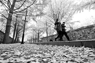 本報訊(記者 李夢婷)每年11月中上旬是北京銀杏的最佳觀賞期。北京青年報記者從圓明園獲悉,圓明園三園交界處的銀杏樹葉已有八成以上變黃了,景色美不勝收,許多游客都在銀杏樹下合影留念。