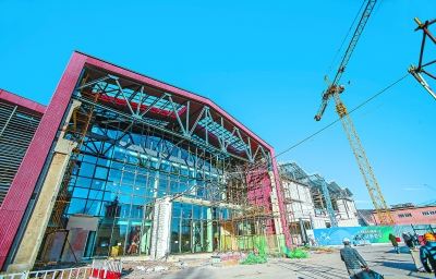 銀灰色的建筑物共分3層,腳手架正支撐著屋頂,屋頂以廠房屋頂為原型,將進行加層改造,觀眾席已搭建完畢,這是“四塊冰”中唯一配備觀眾席的場館,可舉辦容納3000名觀眾的正式比賽。場館外四周留出的空間將建成商業(yè)配套區(qū)。目前,冰球館熱交換站已完成預(yù)驗收,制冰機房管道已安裝完畢,目前正在進行方案深化。