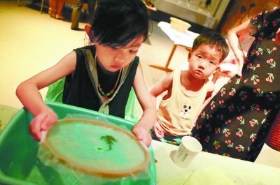 小朋友在體驗(yàn)花草紙團(tuán)扇制作 本報(bào)記者方非 攝
