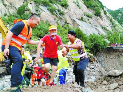 昨天下午13時(shí)49分,困在密云山區(qū)的最后一批游客安全撤離。 錢蕾攝