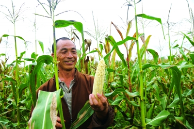 在豐臺(tái)-淶源特色玉米種植示范基地,種植大戶王建飛展示種植的“水果玉米” 攝/趙智和